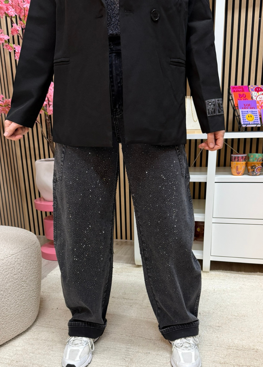Barrel jeans – Zwart met rhinestones