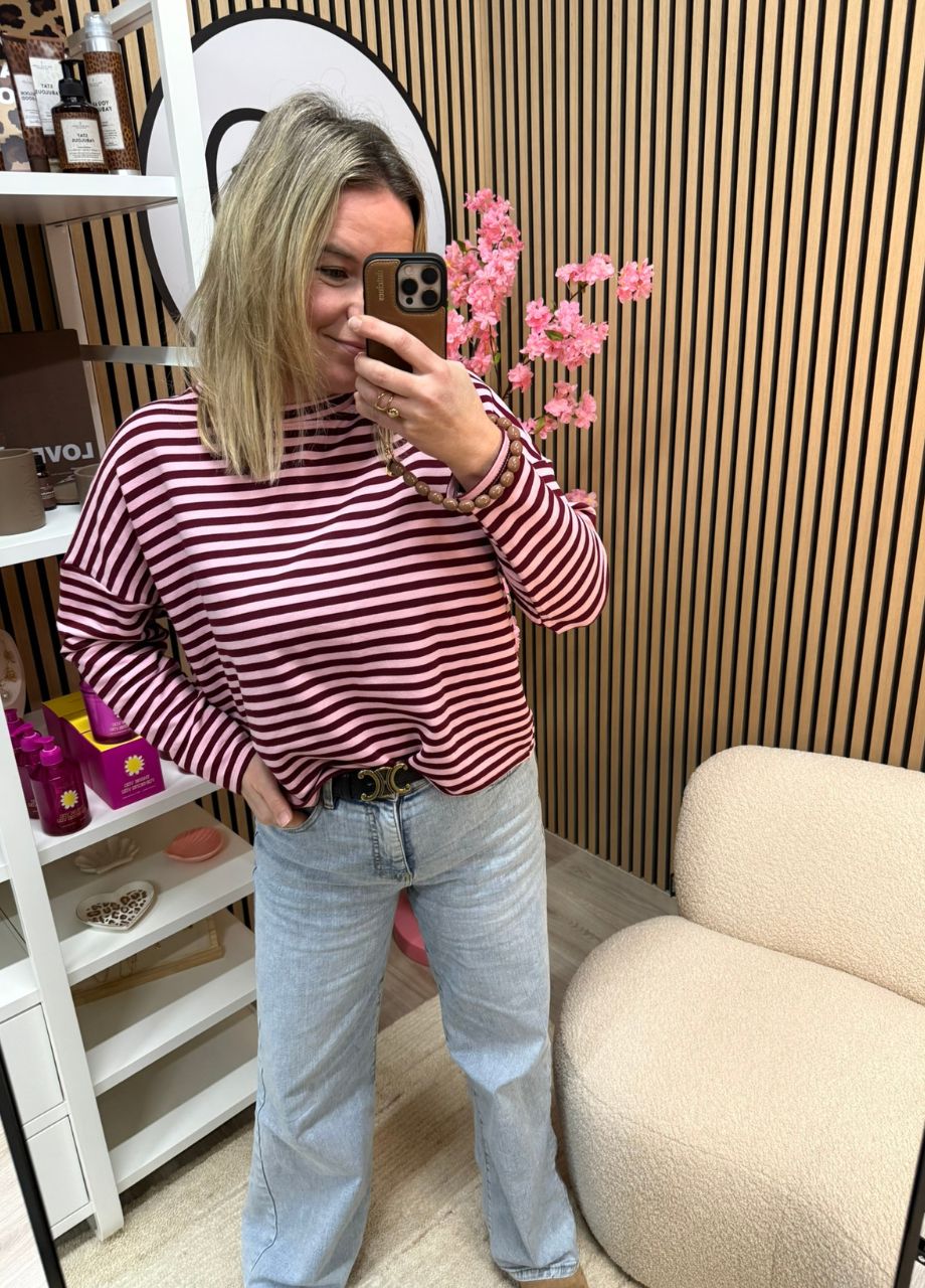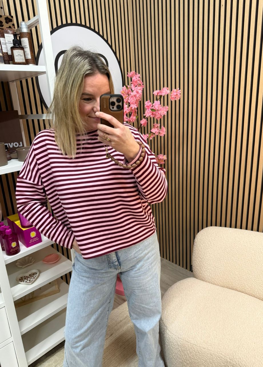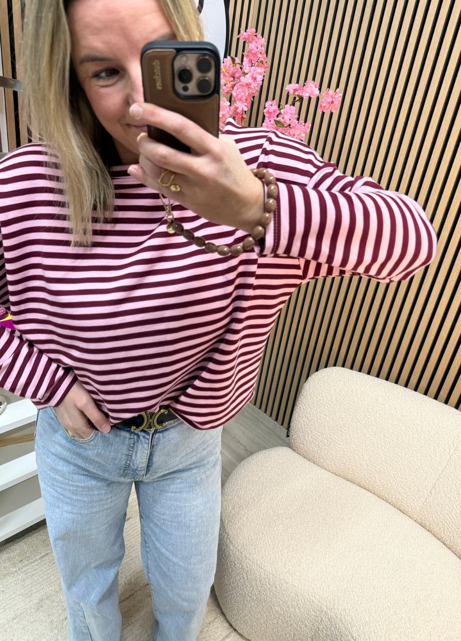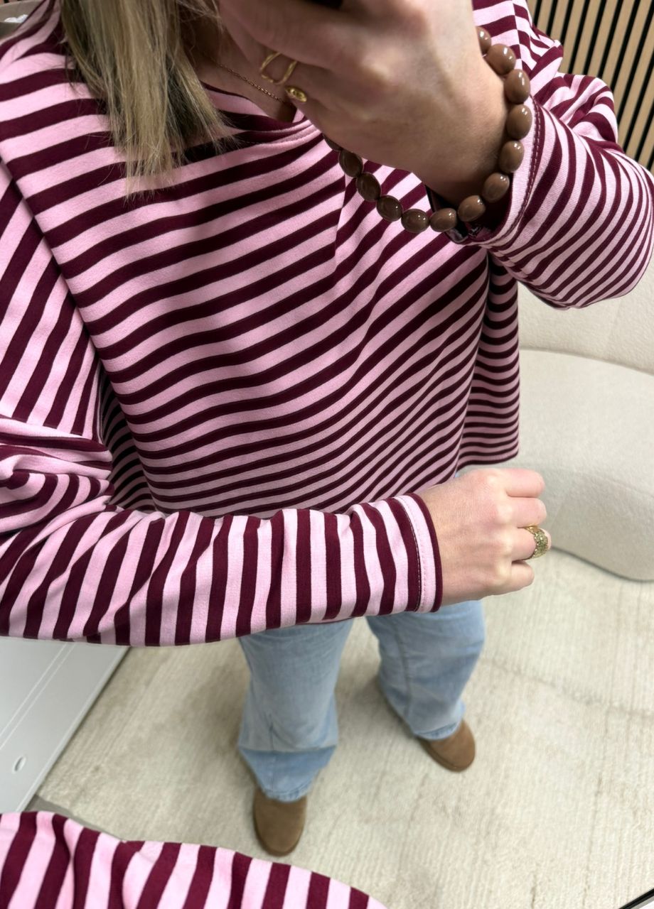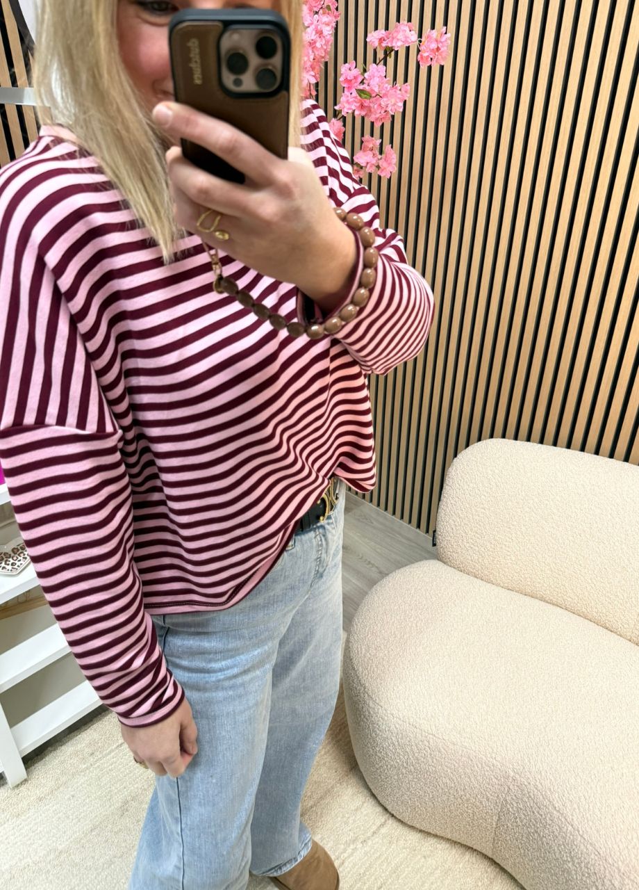 Gestreepte longsleeve – Bordeaux/roze