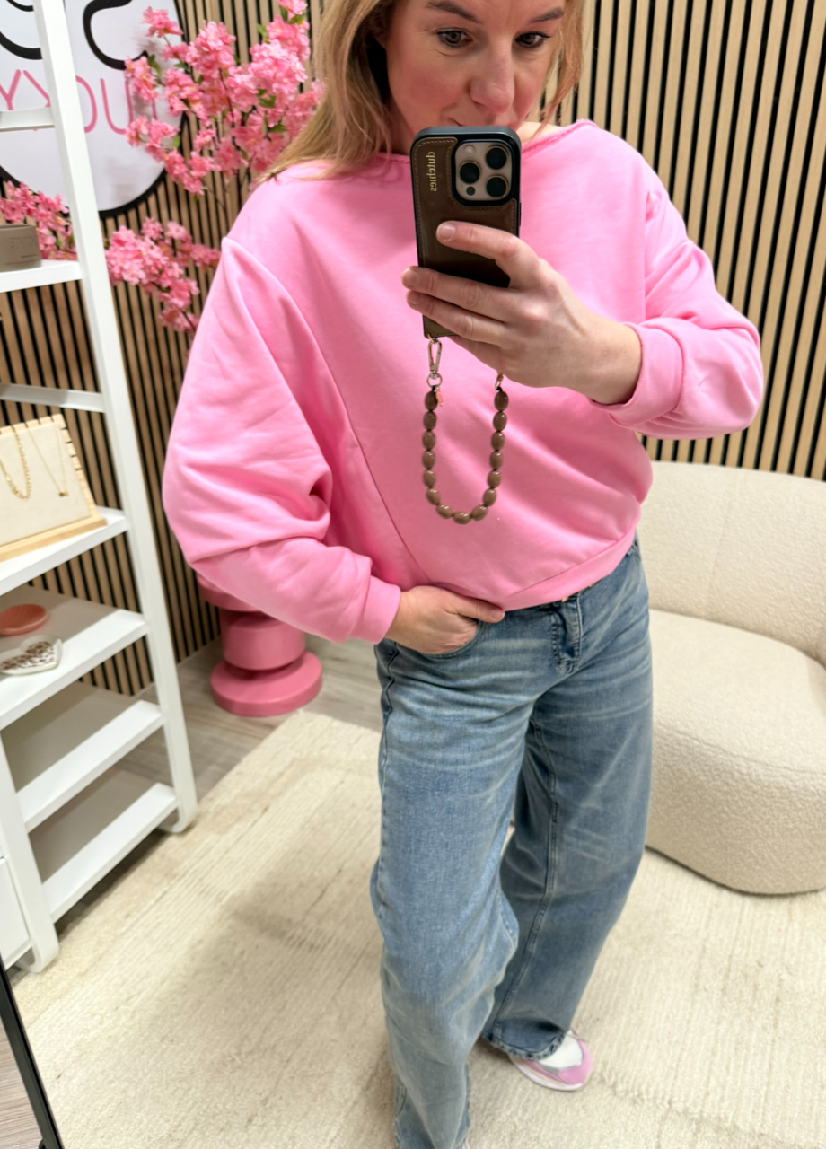 Deze sweater is verkrijgbaar in meerdere kleuren. Naast roze vind je hem bij So Lucky ook in grijs, lichtblauw en butter yellow.