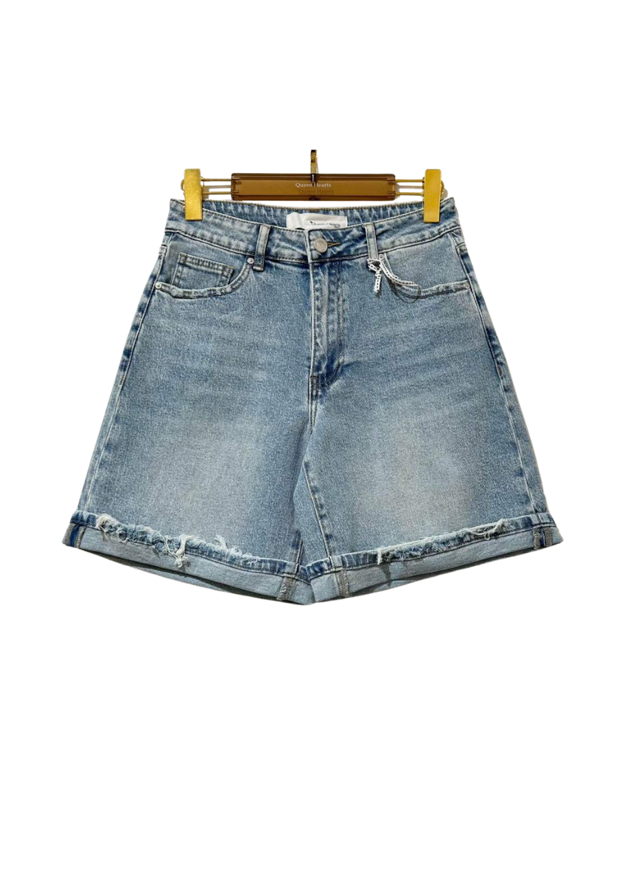 Denim short van Queen Hearts in lichtblauw met stretch. Fijn model voor de warmere dagen en makkelijk te combineren.