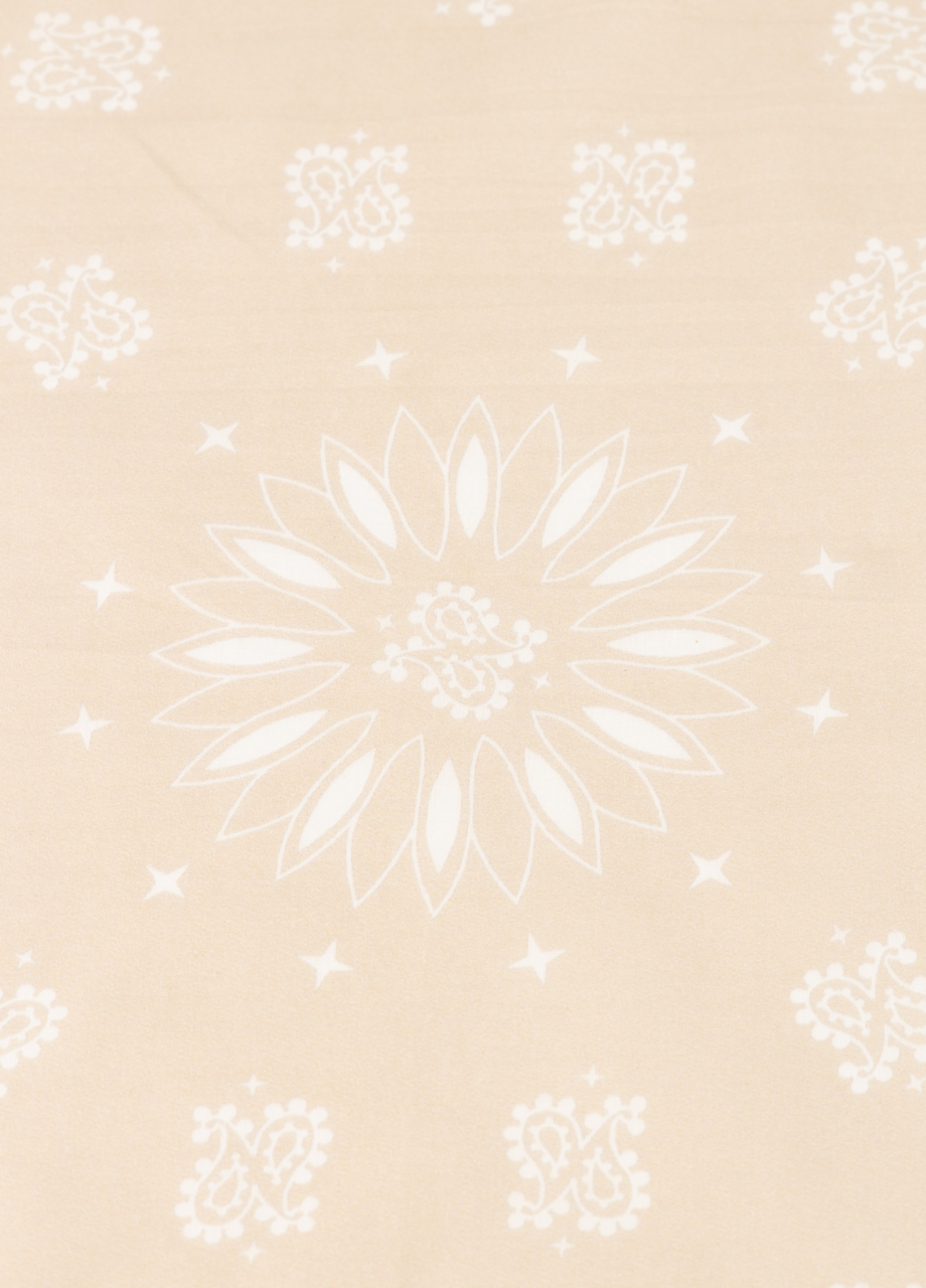 De sjaal heeft een vierkant formaat van 65 x 65 cm. Dat maakt ’m ideaal om los om je nek te dragen, te knopen of iets strakker te vouwen. Door het compacte formaat blijft het sjaaltje licht en prettig om te dragen, de hele dag door.
