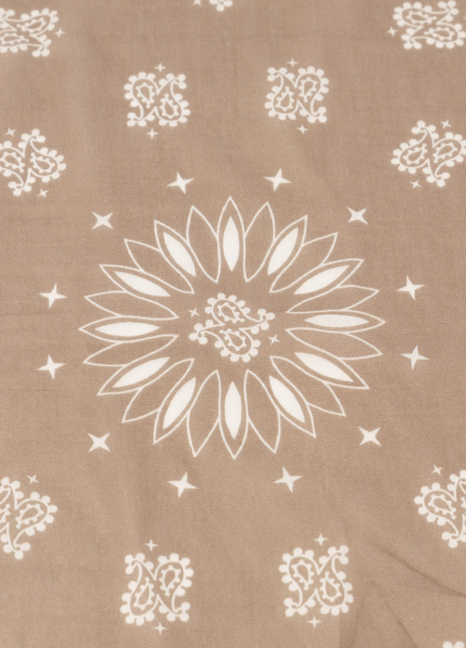 De sjaal heeft een vierkant formaat van 65 x 65 cm. Dat maakt ’m ideaal om los om je nek te dragen, te knopen of iets strakker te vouwen. Door het compacte formaat blijft het sjaaltje licht en prettig om te dragen, de hele dag door.