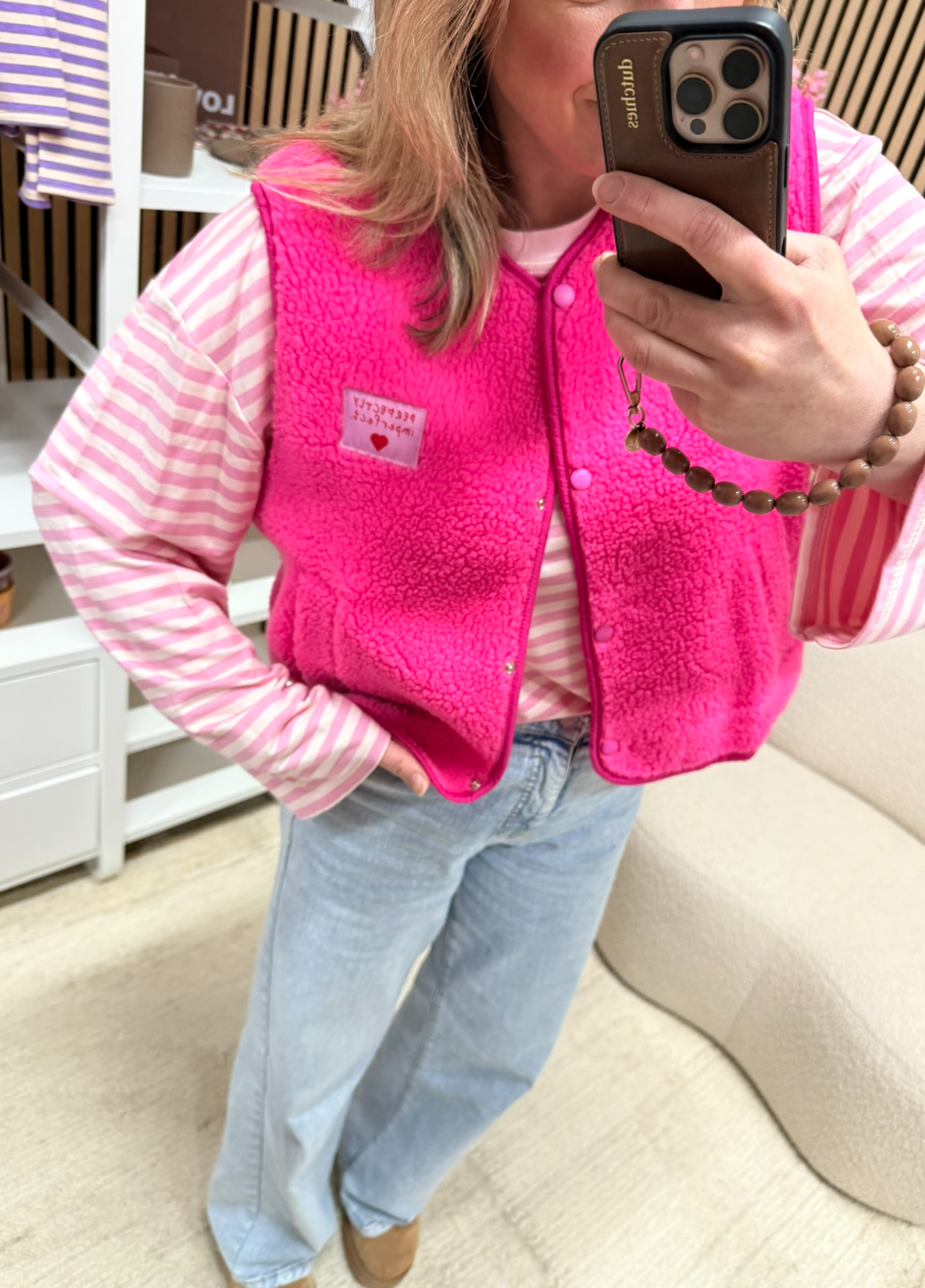 Teddy bodywarmer – roze – Perfectly imperfect patch